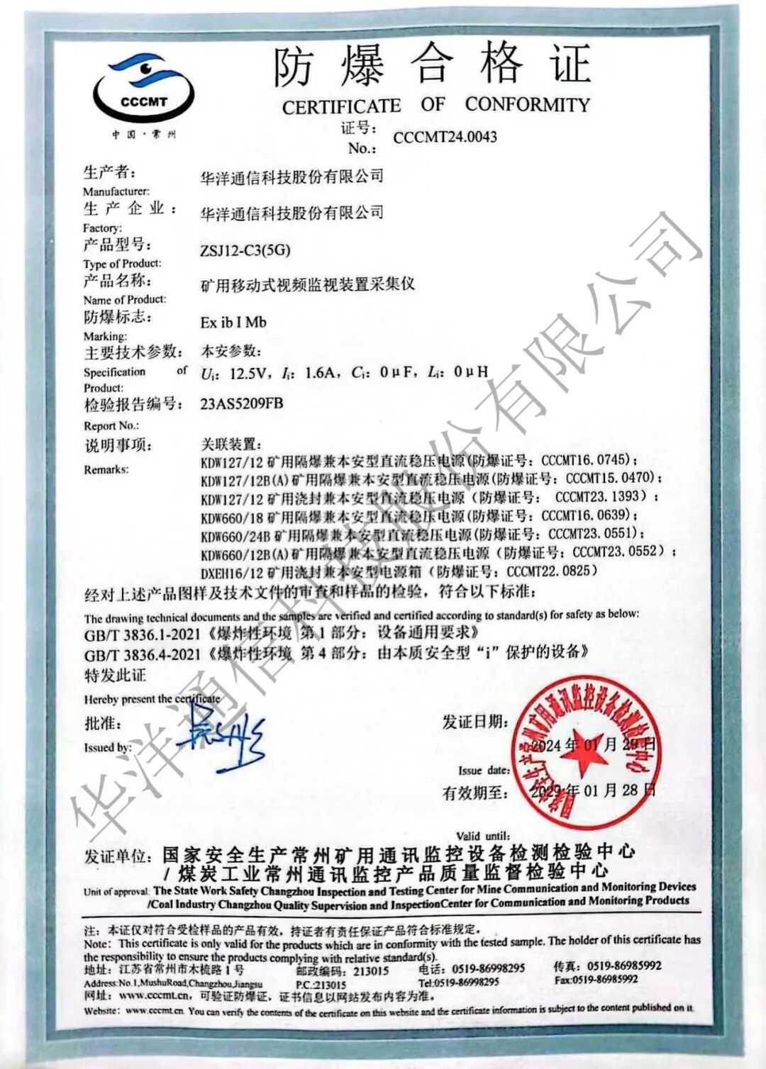 我司自主研发的ZSJ12-C3(5G)矿用移动式视频监视装置采集仪(安标证号:MFD240232),具有体积小,重量轻,低照度等优点。